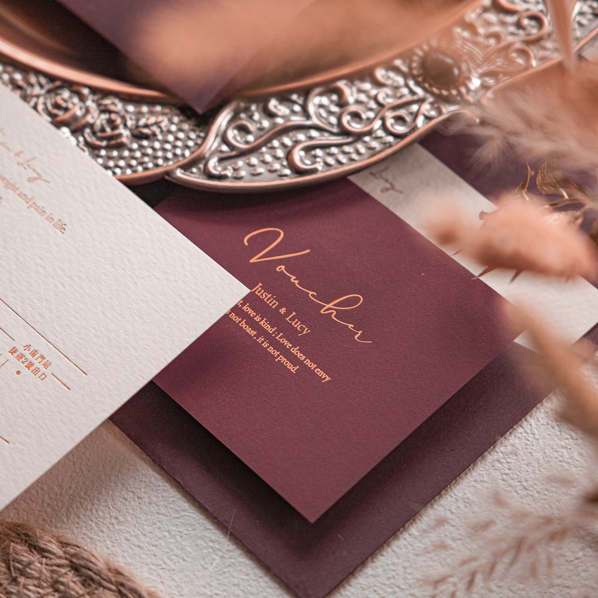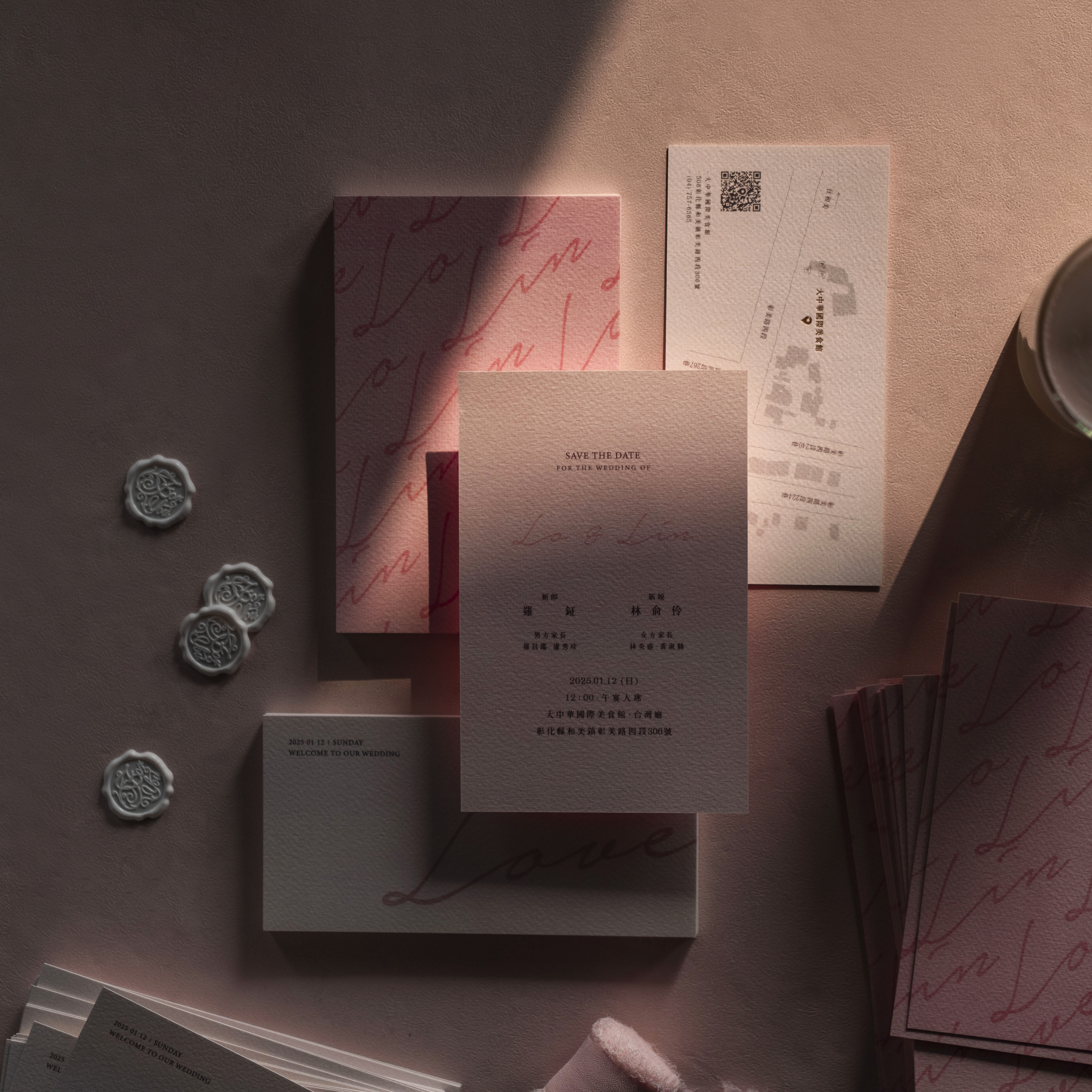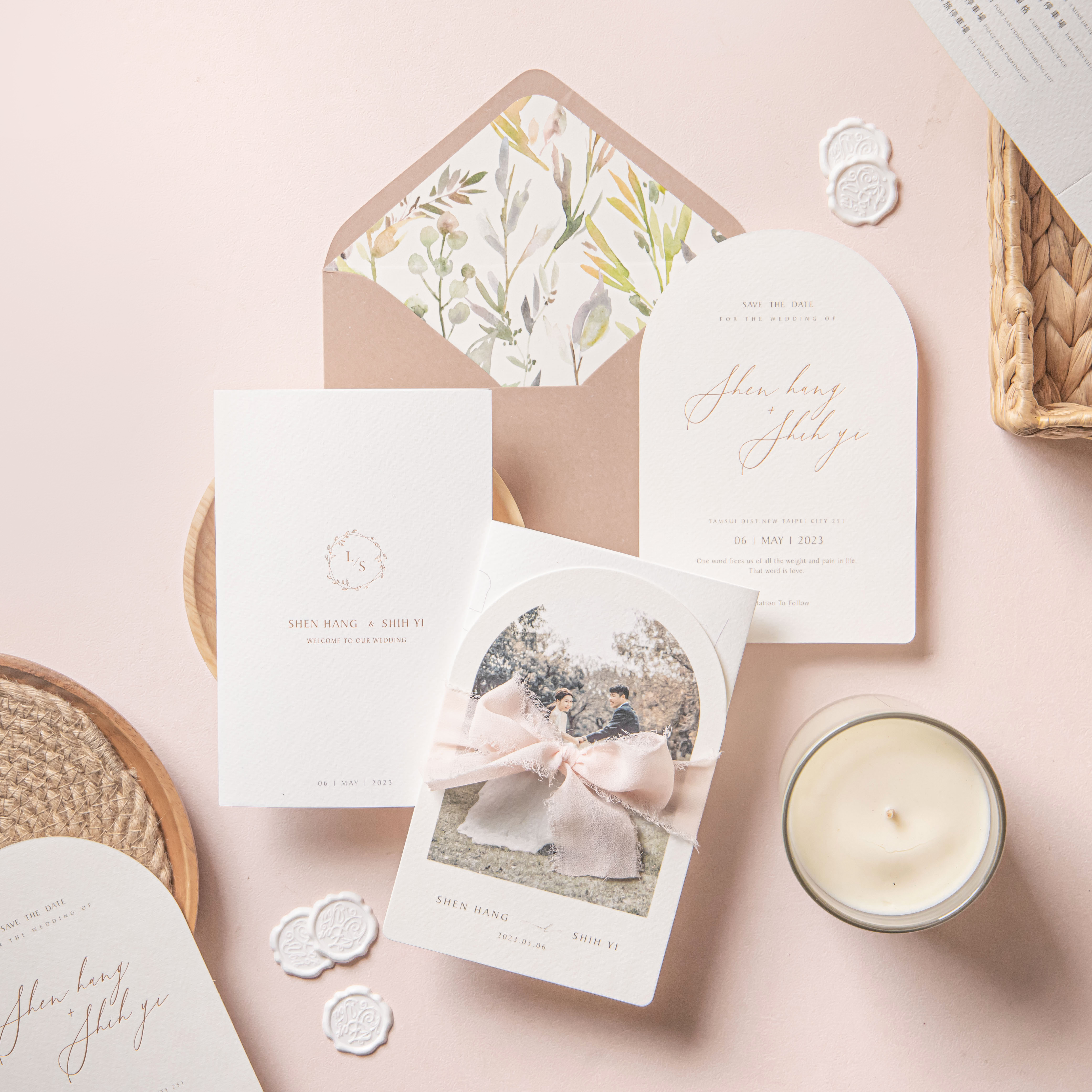 每份喜帖都是由精心挑選的材料和手工製作而成