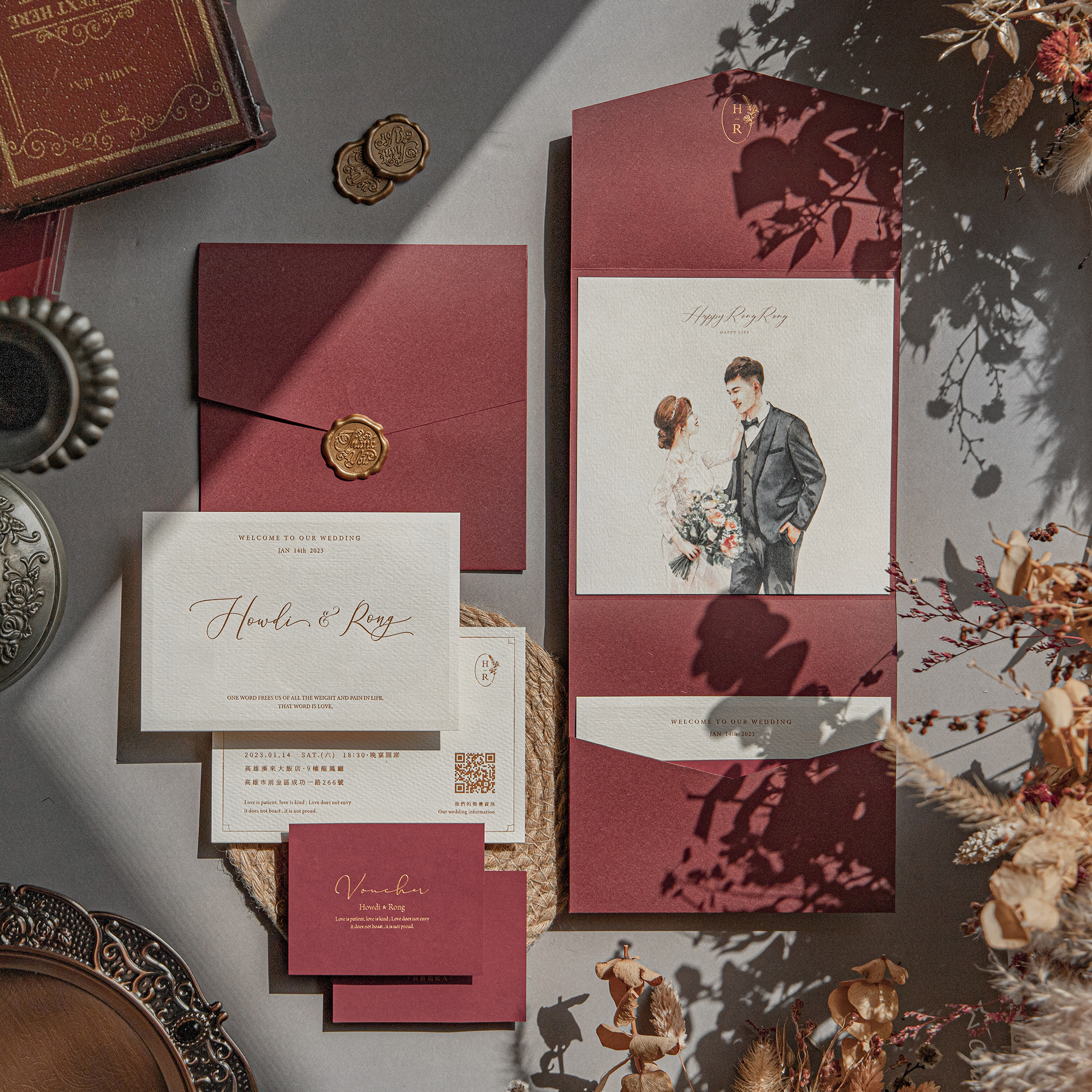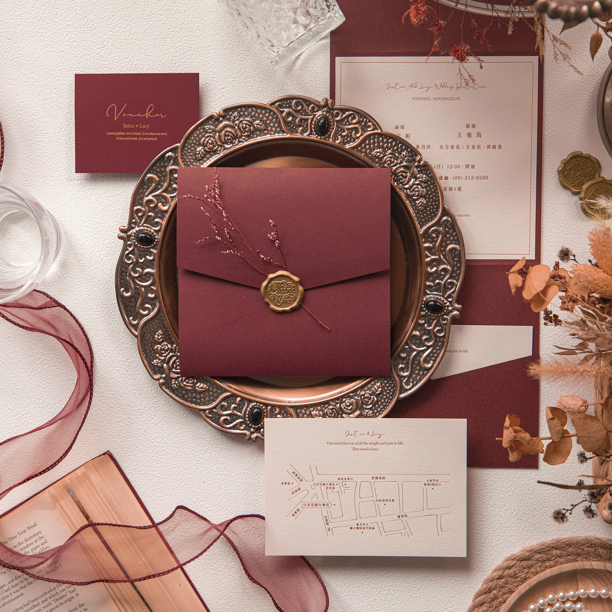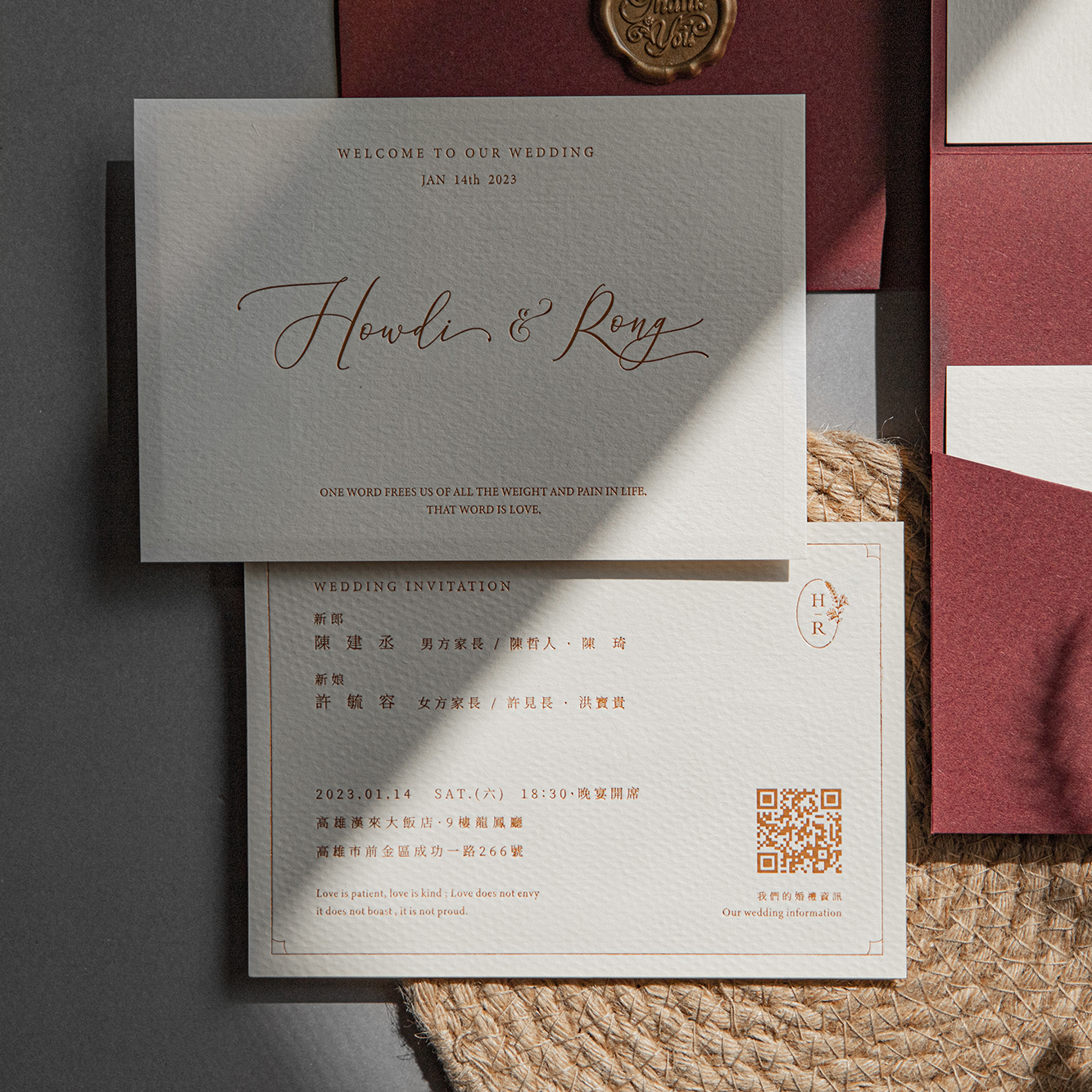 每份喜帖都是由精心挑選的材料和手工製作而成
