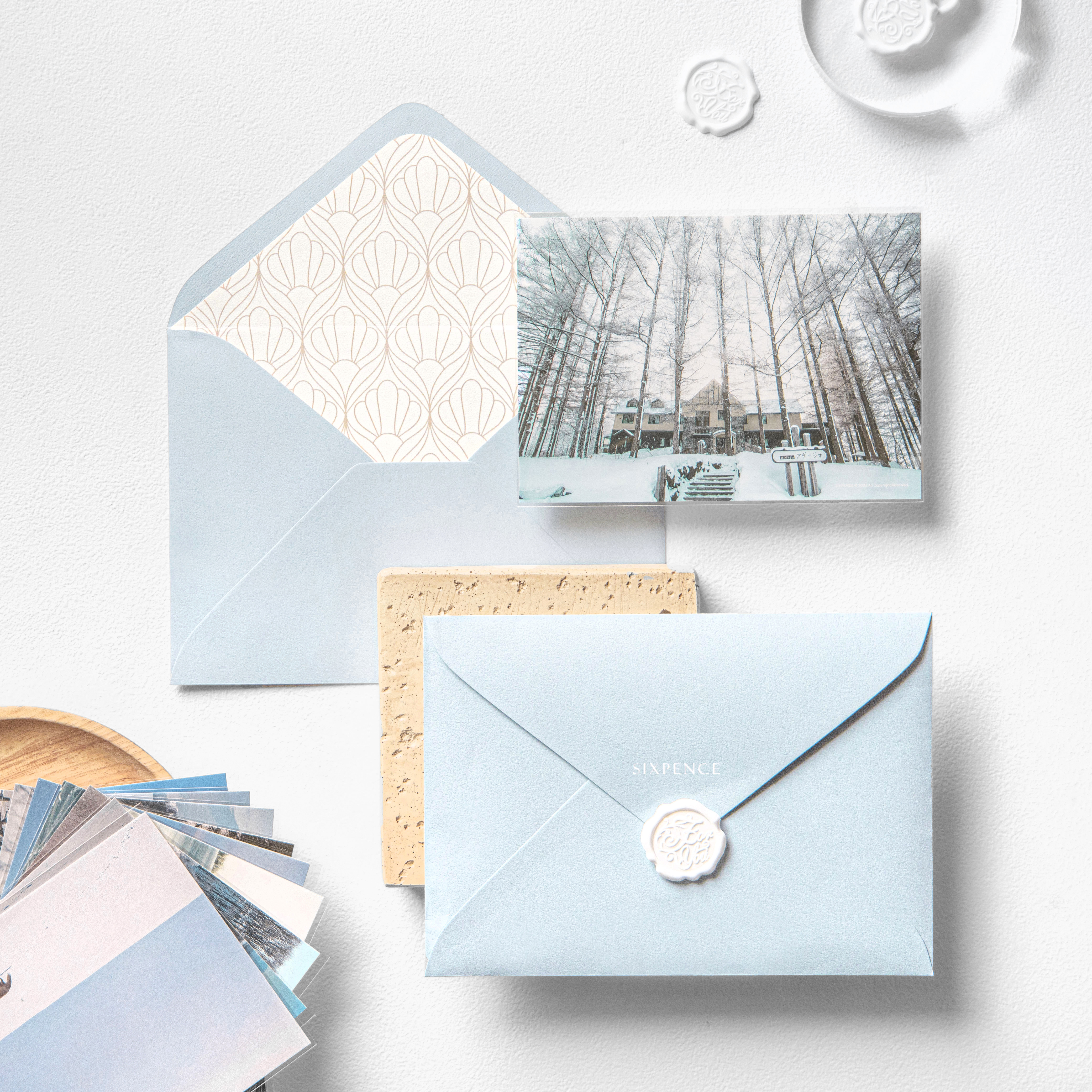 信封選擇天空藍,與展覽的寒色色調更一致
